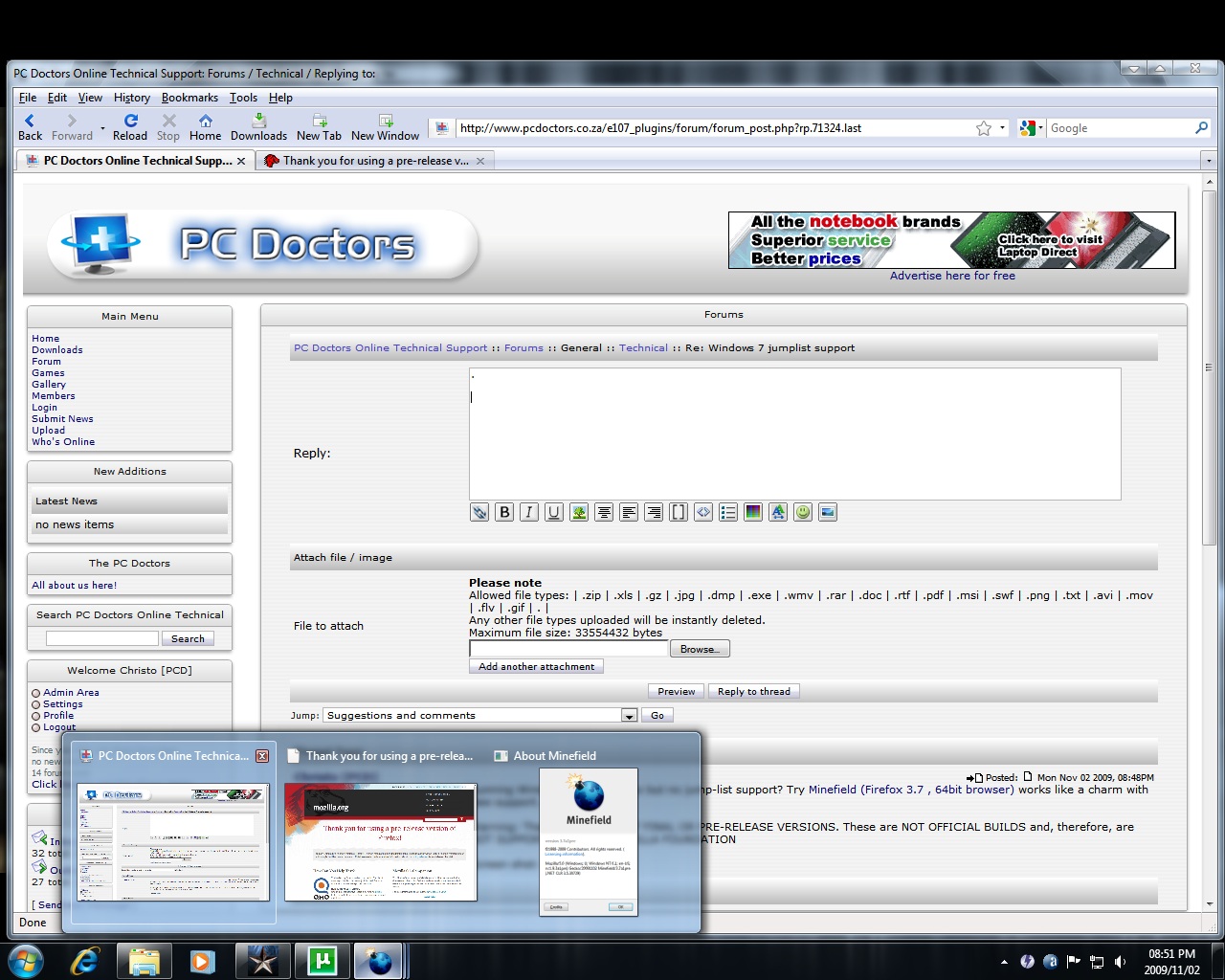 Download Firefox 3.7 (turned on jemalloc, JIT and Windows 7 feature)